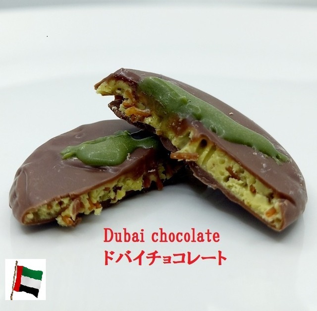 岩崎食品オリジナルの異国情緒あふれるパリパリ新食感の「ドバイチョコレート」が登場!驚きの美味しさを感じる、ピスタチオペースト2g入りのドバイチョコレート10個がセットになっています。コーティングしたミルクチョコとフィリングのホワイトチョコ2種類の優しい甘さの中に、パリパリ、カリッとしたカダイフ(乾麺)と、くせになるピスタチオの風味が絶妙にひとつになった贅沢なスイーツです。おやつにぴったりな、一口サイズで手軽に楽しめる魅力的なチョコレートスナックです! ★新商品:ドバイチョコレート第二弾『ピスタチオ&ココナッツ』はこちらをクリックしてください。細切りローストココナッツのサクサク・ザクザク感が楽しめます。 当店おすすめです。 https://iwasakifoods.thebase.in/items/98768744 ### こだわりポイント こだわり1:1個あたり2gのピスタチオペーストが入っており、風味豊かで香ばしい味わいが口いっぱいに広がります。 こだわり2:外側のミルクチョコとフィリングのホワイトチョコのやさしい甘さが、ピスタチオの風味を引き立て、贅沢な味わいを実現。どなたでも楽しめる一品です。 こだわり3:カダイフ(乾麺)のパリパリ、カリッとした食感を楽しめます。 ドバイの特別なチョコレートを、大切な人とのおやつタイムや贈り物にぜひお試しください。送料無料でお届けします。 ※カリカリが苦手な方、サクサクタイプのドバイチョコレートはこちらをクリックしてください。https://iwasakifoods.thebase.in/items/97952572 【召し上がり方】 そのままお召し上がりいただけます。暑い日には、冷蔵保存がおすすめです。 【原材料名】 ホワイトチョコレート(植物油脂、砂糖、脱脂粉乳、ホエイパウダー、 食塩)(マレーシア製造)、ピスタチオペースト、乾麺、ミルクチョコレート(砂糖、 植物油脂、ホエイパウダー、ココアパウダー、全粉乳)、抹茶粉末/乳化剤、 香料、(一部に乳成分・小麦・大豆を含む) 【内容量】 10g×10個 直径約4.5cm 厚さ約5mm~8mm 【賞味期限】 1ヶ月(開封後はお早めにお召し上がりください) 【保存方法】 高温多湿を避け、冷暗所で保存してください。 ドバイの風味を感じる贅沢なチョコレートで、特別なおやつタイムをお楽しみください!他のスイーツも合わせてぜひご覧ください。